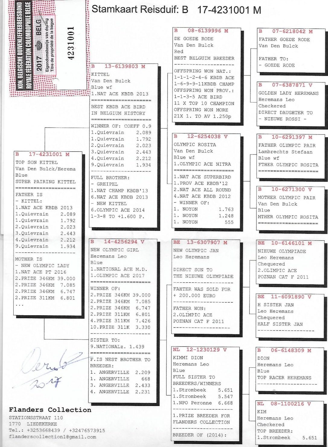 Responsible for Generations of Top Breeders and Racers Including Sire to 20 x 1 Prizes incl: