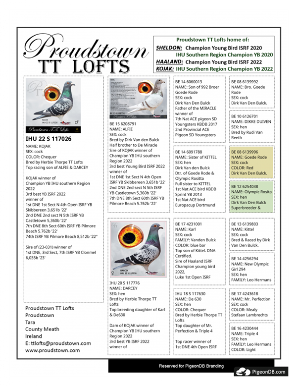 2nd Best ISRF Young Bird 2020 - (Beaten by "Sheldon", bred by Proudstown TT Lofts)