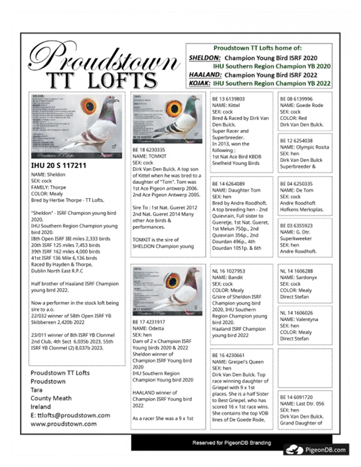 Half Brother to "Haaland" ISRF Champion Young Bird